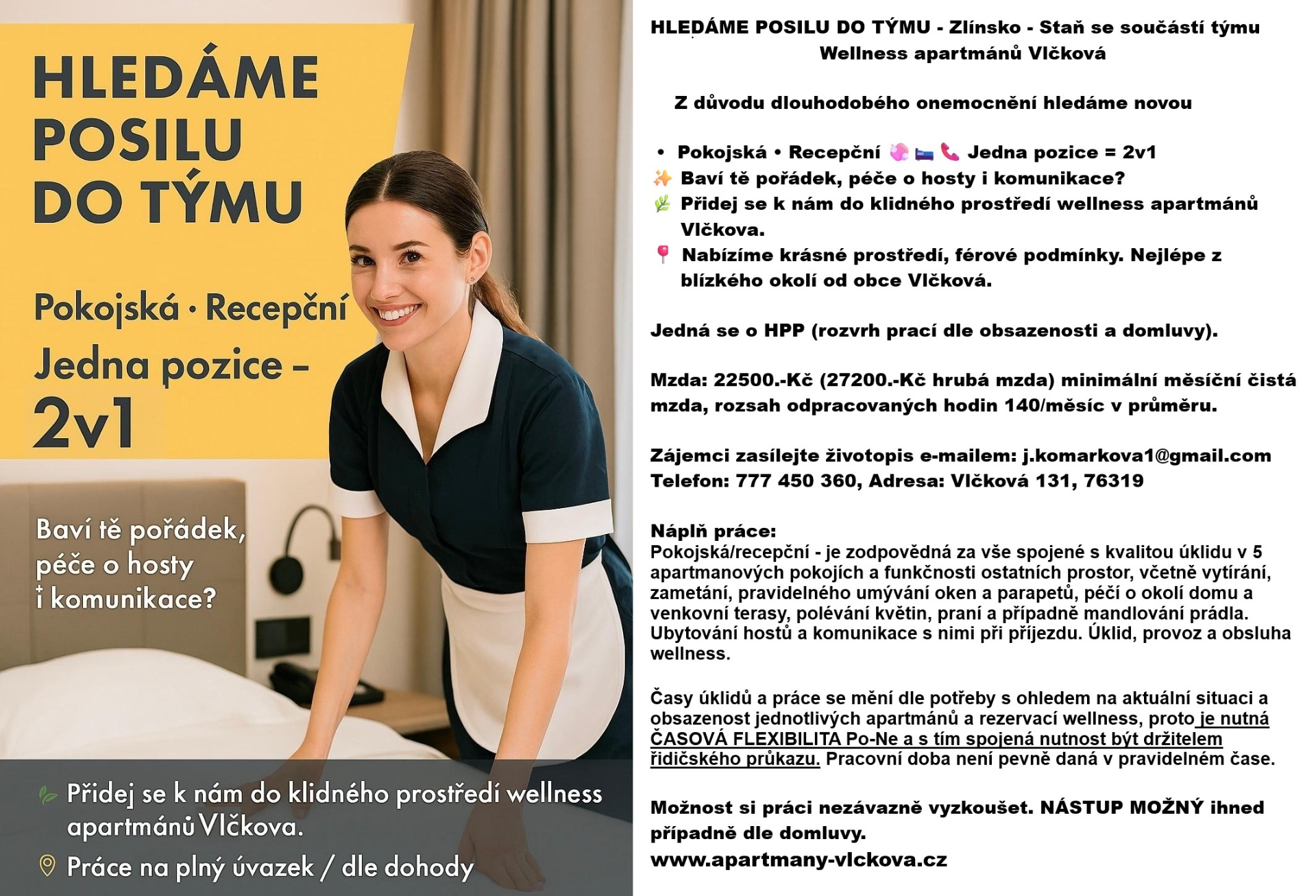 AKTUÁLNÍ OBSAZENOST - ACTUAL OCCUPANCY: https://www.apartmany-vlckova.cz/aktualni-obsazenost/